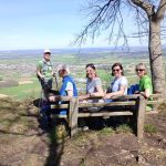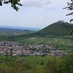 Zunächst ging es noch gemütlich durch die Weinberge, bevor der knackige Anstieg zum Schillingskreuz hoch folgte. Nach dieser Anstrengung mussten wir uns erst einmal eine kurze Rast mit leiblicher Stärkung gönnen. Auf dem Bergkamm zwischen Erms- und Neuffener Tal liefen wir durch den wunderbar ergrünten Buchenwald Richtung Dettinger Hörnle, das mit 707 Metern der höchste Punkt auf der Tour war. Auf dieser Strecke genossen wir immer wieder tolle Ausblicke rechter Hand auf die Burg Hohenneuffen sowie linker Hand bis nach Reutlingen. Angekommen auf dem Jusi, dem höchsten Schlot des vor 17 Millionen Jahren ausgebrochenen Schwäbischen Vulkans, waren wir von dem vor uns liegenden Panorama, das vom Stuttgarter Flughafen über Nürtingen bis zu unseren Drei-Kaiserbergen reichte, überwältigt. Nach einem alpinen Abstieg nach Kohlberg gingen wir gemütlich durch Streuobstwiesen zurück.