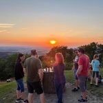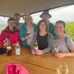 Der Weg ging dann zu den Weinbergen über, wo viele Trauben zu sehen waren. Das Ziel war die Luitenbacherhöhe. In letzter Minute konnten wir uns noch eine Flasche Wein und Wasser ergattern, bevor das Weingut Rühle aufgrund des Wetters Feierabend machte. Diese ließen wir uns jedoch genüsslich auf der Plattform schmecken.