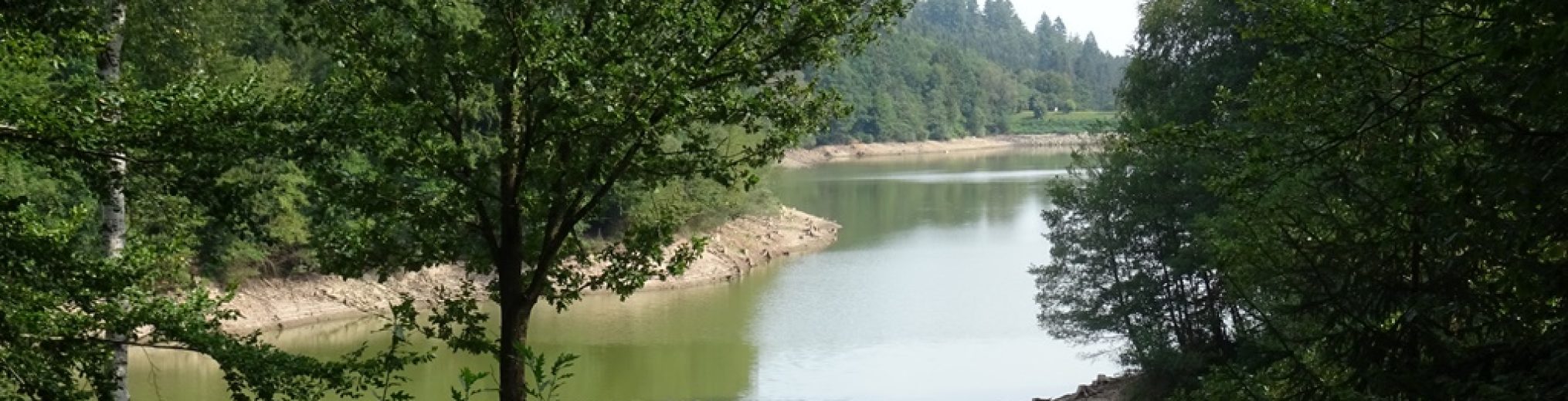 Vom Parkplatz weg ging es für die dreizehn wanderlustigen Senioren ein kurzes Stück an der Straße entlang und dann aber gleich im schattigen Wald Richtung Stausee. Dieser wird aktuell abgelassen, da nach vielen Jahren mal wieder eine Sanierung und Kontrolle ansteht. Die sichernde Funktion des Staudamms muss gewährleistet bleiben. Bei den sich häufenden Starkregen ist die Bedeutung dieses Rückhaltebeckens für das Herrenbachtal und Rechberghausen noch gestiegen. 2,1 Millionen Kubikmeter Fassungsvermögen lassen ahnen, welche Katastrophe vermieden werden muss. Auf dem Weg um den See öffnete sich immer wieder der Blick auf den schon abgesunkenen Wasserspiegel und die ausgetrocknete Uferböschung. Seitliche Buchten liegen teils schon ganz trocken. Die Gruppe ließ es sich nicht nehmen und umrundete den Stausee ganz, nahm also nicht die Abkürzung über die Brücke. Nach zwei Stunden erreichte man angesichts der Temperaturen nach zügigem Tempo und natürlich etwas verschwitzt wieder den Parkplatz.
