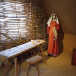 Wir betraten zunächst eine Webhütte, die tief in den Boden eingelassen war. Wir erfuhren, wie diese rekonstruiert worden war. Zum Essen gab es damals Getreide und Hülsenfrüchte. Das Fleisch der Kuh musste lange gekocht werden, denn die Kuh wurde erst geschlachtet, nachdem sie viele Jahre den Karren gezogen, jährlich ein Kälbchen zur Welt gebracht und Milch gegeben hatte.
