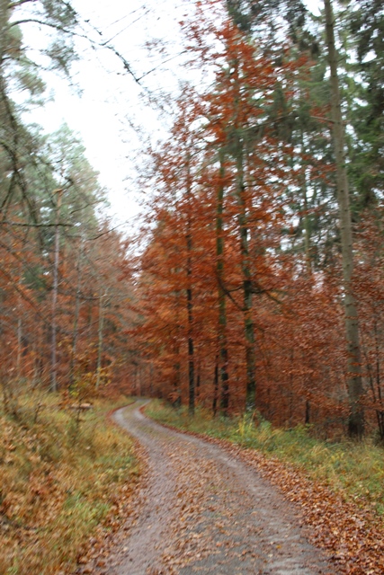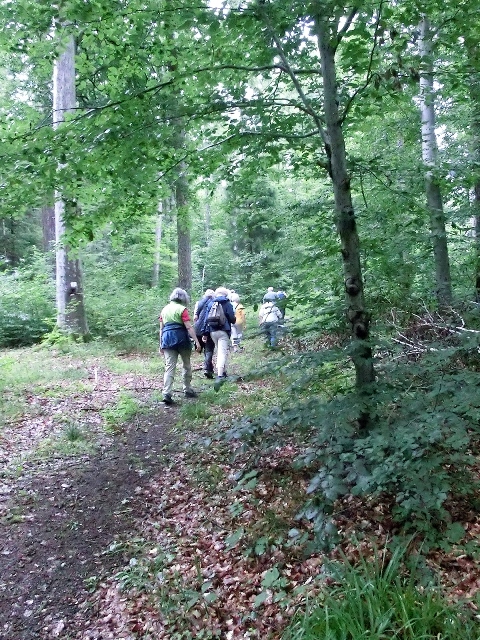 Nun fuhren wir weiter zum Parkplatz am Forsthaus, wo die Wanderung begann. Auf besten Wanderwegen (auch wenn es in der Nacht noch heftig geregnet hatte) ging es auf den Höhen des Schurwaldes etwa 6 km durch den Wald. Vorbei an Tollkirschbüschen und hohem Farn erreichten wir nach etwa 1,5 Stunden wieder den Parkplatz. Die letzten 5 Minuten fing es noch leicht an zu regnen, so dass das Ende der Wanderung gerade recht kam.