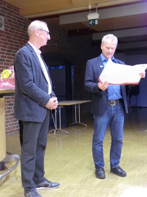 Nach zweieinhalb Jahren durfte Vorstand Hans-Jürgen Digel wieder einmal die Mitglieder der Ortsgruppe zu einer Mitgliederversammlung begrüßen. Coronabedingt mussten die planmäßigen Veranstaltungen im Februar 2020 und März 2021 leider ausfallen und auch diesmal war die Versammlung noch von Einschränkungen gekennzeichnet. Zwei Jubilare und Herr Bürgermeister Vesenmaier wurden besonders begrüßt. Zunächst gab der Vorsitzende einen Rückblick auf die zurückliegenden Wanderjahre 2019 und 2020. Wehmütig erinnerte er an die in 2019 noch ungestört abgelaufenen Höhepunkte Pfingstmarkt, Landesfest in Schwäbisch Gmünd, die erste Löwenpfadwanderung des Filsgaus auf der Staufer-Runde, den Kulturabend mit herrlichen Musicalmelodien und die 41. Waldweihnacht im Burghof des Wäscherschlössles. Zwei Mitglieder sind in den vergangenen zwei Jahren seit der letzten Versammlung verstorben: Heinz Weber und Rolf Koth. Ihrer wurde in einer Schweigeminute gedacht. 2020 war zwar das Pandemiejahr, trotzdem konnten einige Aktivitäten durchgeführt werden. Die Bilder der Weinprobe „Tour de France“, vom Besuch im Theodor-Heuss-Haus in Stuttgart, von der Gauversammlung in der Bürenhalle, von der 40km-Weitwanderung zum Deutschen Haus und von der Brauereiwanderung zu Eremita in Birenbach begeisterten nochmals die Teilnehmer. Der Vorstand gab auch einen Überblick über die Finanzen der beiden Jahre und nach den positiven Kassenprüfungsberichten wurde Kassiererin Sybille Griebling einstimmig entlastet. Es folgten die Berichte vom Wanderwart der Senioren, der Wandergruppe und der Familiengruppe. Hier war besonders die Wanderung zum Kalten Feld bemerkenswert, da sie rekordverdächtige fünfundvierzig Teilnehmer aufwies. Nach diesen Berichten konnte die Entlastung des Vorstands vorgenommen werden. Sie erfolgte einstimmig. Für Vorstand Hans-Jürgen Digel war es eine große Freude, trotz Corona zwei Jubilare ehren zu können. Reinhold Baur und Edi Stadelmaier wurden mit Urkunde und Nadel für jeweils 50 Jahre Mitgliedschaft geehrt. Eine bemerkenswerte und besondere Ehrung erhielt Wanderfreund Walter Wippler. Er war nicht nur lange Jahre stellvertretender Vorsitzender, Jugendleiter und Ausschussmitglied, er war auch mehr als vierzig Jahre lang als Wanderführer tätig gewesen. Dafür verlieh ihm der Schwäbische Albverein das Ehrenschild in Silber als großes Dankeschön für so viel Engagement. Die Wahlen zu Vorstand und Ausschuss schlossen sich an. Fast alle Posten konnten wieder besetzt werden. Nur für den ersten Stellvertreter, also eine/n Nachfolger/in für Ralf Over, hat sich noch niemand gefunden. Ralf gibt diesen Posten auf, wird jedoch bis zur kommenden Versammlung kommissarisch weitermachen. Er erhielt für seinen jahrelangen Einsatz ein Geschenk. Als neue Kassenprüferin agiert künftig Miriam Gölz und als neues Ausschussmitglied konnte Wolfgang Bertele gewonnen werden. In seinem Grußwort beglückwünschte Bürgermeister Vesenmaier die neuen und wiedergewählten Posteninhaber. Er sieht den Schwäbischen Albverein Wäschenbeuren gut aufgestellt und im vordersten Feld der Filsgau-Ortsgruppen. Das vielfältige Angebot von Seniorenwandern bis zur Familiengruppe sei attraktiv und ein wertvoller Bestandteil des Vereinslebens in Wäschenbeuren. Um 21.30 Uhr wurde der offizielle Teil beendet und man saß noch gemütlich bei einem Glas Wein oder einem Bier zusammen.