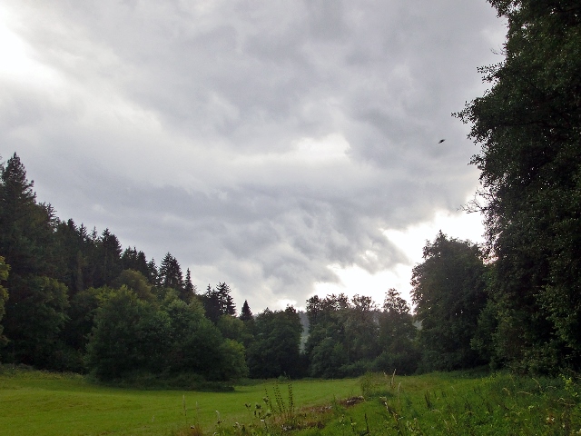 Es zogen Wolken auf und über dem Hohenstaufen und Aasrücken grummelte es bedenklich. Wir setzten nun unsere Wanderung fort (es ist gut jemand zu haben der die Gegend wie seine Westentasche kennt) und es wurde wetterbedingt eine Abkürzung genommen. Kurz bevor die Gaststätte erreicht war, fing es doch noch an leicht zu regnen. Es war kein Wolkenbruch, aber wir waren froh unser Ziel nach etwa 6km Wegstrecke und einer Gehzeit von etwas mehr als 1,5 Stunden erreicht zu haben.