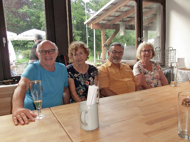 Hier hatten bereits zwei nicht Wanderer auf der Terrasse Platz genommen und empfingen die Wandergruppe mit fröhlichem Hallo. Bei anschließendem Essen und Trinken wurde sich lebhaft unterhalten. Ein schöner erlebnisreicher Wandernachmittag ging langsam zu Ende.