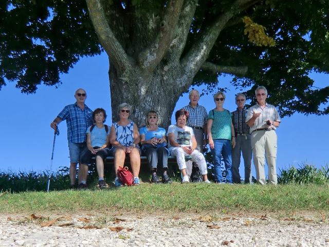 Bei herrlichem Spätsommerwetter trafen sich neun Wanderer zu einer Nachmittagswanderung am Sonntag, den 05.09.21. Ausgangspunkt war Wißgoldingen. Der Wanderweg führte über die Lourdesgrotte hinauf zur malerisch gelegen Marienkapelle mit einem herrlichen Blick auf die Drei-Kaiserberge. Weiter auf einen Feld- und Waldweg an zwei bemerkenswerten Linden vorbei. Nach einer Kehrtwende vor Winzingen ging es zurück zum Ausgangspunkt. Nach ca. 2 Stunden Gehzeit freuten sich alle auf die Abschlusseinkehr im roten Löwen auf dem Rechberg.