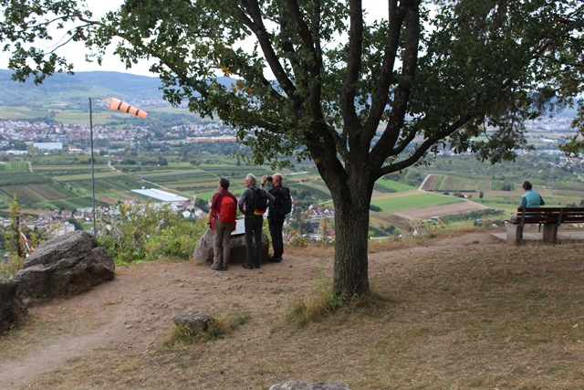 Der andere Teil unternahm eine Wanderung durch die Weinberge zum Aussichtspunkt „Lindelberg“. Von der Höhe hatten wir eine wunderschöne Aussicht über die Region. Nach kurzem Aufenthalt ging es weiter durch Weinberge, Wald und Wiesenwege bis zum Weigut Birkert, wo im dortigen Besen der Abschluss geplant war. Etwa 6 km Wegstrecke (2 Gehstunden) waren geschafft.