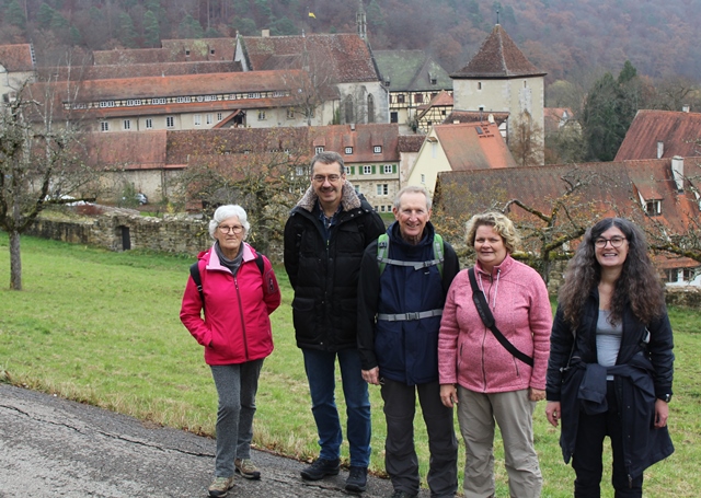 Was macht Wanderungen im November attraktiv? Nun in diesem eher feuchten Jahr konnten wir bei unserer Wanderung im Schönbuch durchaus noch spätherbstlich gefärbtes Laub genießen. Es blieb den ganzen Tag trocken und mäßig kühl, so dass wir die 11,6 km zügigen Schrittes und mit einer Vesperpause in der Mitte absolviert haben. Wir fünf waren so zügig unterwegs, dass wir zu früh für unsere gebuchte Führung „Waidmannsheil“ im Schloss ankamen. Wir nutzten die Zeit, um den Teil der großen Anlage selbst zu erkunden, der in der Führung nicht vorkommen sollte, das Kloster. Die Pfalzgrafen zu Tübingen hatten einst die Zisterzienser nach Bebenhausen geholt, um eine repräsentative Grablege für ihr Geschlecht zu erhalten. Das Kloster blühte auf und bot bald über hundert Mönchen und vielen Laien ein Zuhause. Dementsprechend großzügig ist die Anlage gestaltet. Nach dem Übergang zu den Württembergern war es 1534 vorbei mit dem Kloster nach katholischem Glauben, weil die Reformation in Württemberg eingeführt wurde. Eine protestantische Klosterschule entstand, in der u.a. der Philosoph Schelling ausgebildet wurde. 1806 wurden letztlich auch die Schule und das Kloster säkularisiert, was natürlich auf Napoleon zurückzuführen war. Der Kreuzgang und die verschiedenen Räume des ehemaligen Klosters sind eindrucksvoll und dienten sogar direkt nach dem zweiten Weltkrieg als Landtagsgebäude für Württemberg-Hohenzollern. Die Abgeordneten schliefen im ehemaligen Dormitorium, also wo die Mönche einst geschlafen hatten. Um 15.30 Uhr empfing uns dann der Jäger Lederle des letzten württembergischen Königs Wilhelm II., alias Holger Starzmann. Humorvoll und geistreich brachte er uns die Geschichte Bebenhausens als Jagdschloss der württembergischen Könige näher. Von Delikatessen (abgehangener Fasan) bis zu Delikatem (Männerfreundschaft König Karls), von Bovidae (Gehörnträgern) bis Cervidae (Geweihträgern) und Historismus wie Jugendstil war alles enthalten in den 90 Minuten seiner äußerst kurzweiligen und unterhaltsamen Führung. Der „Lederle“ war gut drauf und wir hatten unseren Spaß. Den mittlerweile aufgekommenen Hunger stillten wir noch im Gasthof Sonne in Bebenhausen und dann fuhr uns Gernot (vielen Dank!) wieder sicher nach Hause.