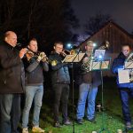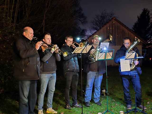 Eine schöne, schon lang währende Tradition ist es auch, dass die Bläser des Musikvereins den Abend mit einem Choral eröffnen. Alle Gäste dürfen dann beim ersten Lied der Singgruppe mit einstimmen: „O Du fröhliche“. In der anschließenden Begrüßung gab es einen kleinen Rückblick auf frühere Waldweihnachten, wo man zu Anfang wirklich tief im Wald gemeinsam sang und Gedichte hörte. Dann folgten viele Jahre im Burghof des Wäscherschlosses und seit einigen Jahren fand die Waldweihnacht eine neue, schöne Heimat direkt am Sängerheim des Liederkranzes.