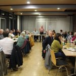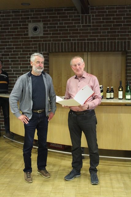 Vorstand Hans-Jürgen Digel konnte im Foyer der Bürenhalle zahlreiche Mitglieder, Jubilare und als Gast auch Herrn Bürgermeister Hagenlocher begrüßen. Dieser richtete danach ein Grußwort an die Versammlung, in dem er das ehrenamtliche Engagement im Verein und den Beitrag zum gesellschaftlichen Leben in Wäschenbeuren hervorhob. Im Jahresbericht 2025 wurde an die seit der letzten Versammlung verstorbenen Mitglieder erinnert: Margot Beck, Hans Stollenmaier, Ingrid Löwenthal, Josef Weber, Martin Schäffler und Siger Stadelmaier. Die Entwicklung der Mitgliederzahl war zuletzt erfreulich: die Zahl stieg von 257 auf 263 Mitglieder und auch zu Beginn des Jahres 2026 konnten bereits drei neue Mitglieder begrüßt werden. Über das Wanderjahr 2025 mit zahlreichen Aktivitäten und Höhepunkten wurde mit Bildern nochmals berichtet und ein Ausblick auf 2026 fehlte ebenfalls nicht. Im Kassenbericht wurde verdeutlicht, dass im vergangenen Jahr ein kleines Plus erwirtschaftet wurde. Im Hinblick auf das Jubiläumsjahr 2027 wurde dies positiv aufgenommen. Die Kassenprüfer testierten dem Kassierer Manfred Rupp eine einwandfreie Kassenführung und somit wurde er einstimmig entlastet. Auch die Entlastung des Vorstands erfolgte einstimmig. Anschließend berichteten die Fachwarte für Familien, für Senioren und für Wegearbeit über das Geschehen in 2