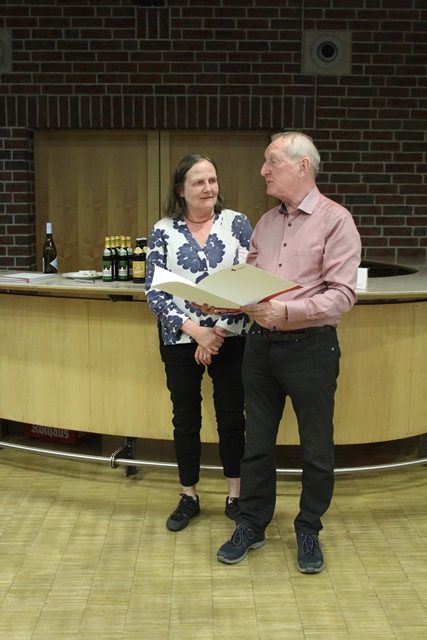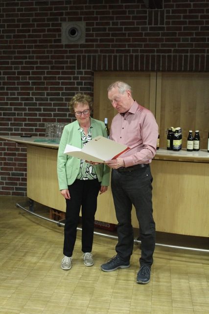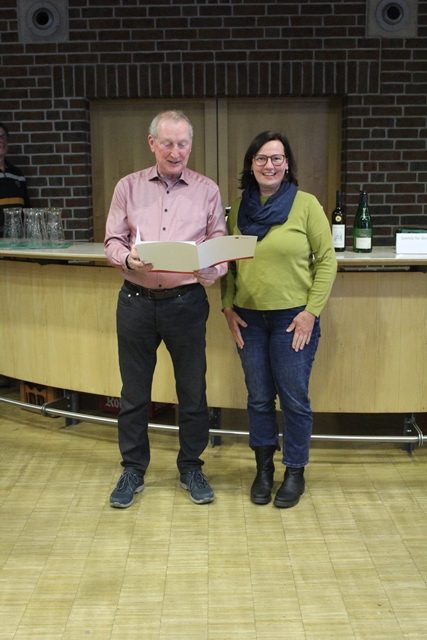 Einen besonderen Punkt stellen bei der Mitgliederversammlung immer die Ehrungen der Jubilare und die Ehrungen für besondere Verdienste dar. In diesem Jahr konnten zwei anwesende Jubilare geehrt werden: für 60 Jahre Mitgliedschaft wurde Frau Elisabeth Peter geehrt und erhielt Urkunde, Ehrennadel und einen Geschenkkorb. Frau Susanne Rupp wurde für 50 Jahre Mitgliedschaft geehrt und erhielt Urkunde, Ehrennadel und ein Geschenk. Entschuldigt waren die Jubilare Gerhard Röth (50 Jahre), Margarete Weber (50 Jahre) und Hermann Knoblauch (25 Jahre). Sie werden in den nächsten Wochen persönlich besucht und geehrt. Eine Silberne Ehrennadel bekam Rainer Kühner für sein Engagement im Verein, insbesondere für die jahrelange Durchführung der Brauereiwanderungen seit 2010. Auch Heike Clement erhielt die Silberne Ehrennadel für ihre Arbeit im Verein, wo sie seit 2009 als Wanderführerin aktiv ist und seit 2013 im Ausschuss als Beisitzerin.